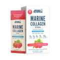 Strawberry Raspberry Marine Collagen Powder with 10,000mg collagen peptides, Vitamin C, and Zinc to promote radiant skin, strong hair, and healthy joints. Dissolves easily in water.