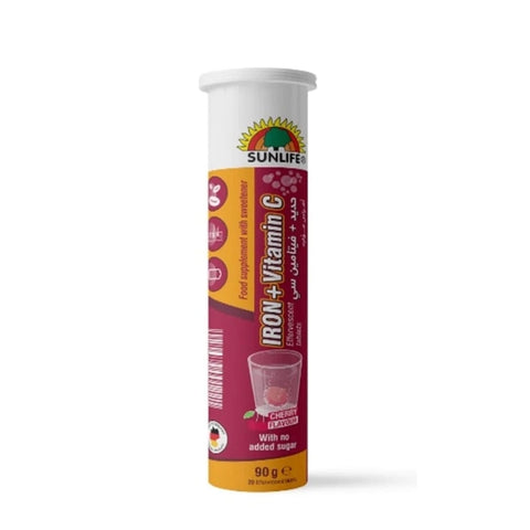 سانلايف حديد + فيتامين سي - قرص فوار بنكهة الكرز 20 قرصًا