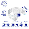 • 2 elastic re-closable side tapes instead of 4 tapes for simple, easy and quick application.
