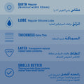 EASY-ON – 52mm nominal width Transparent and lubricated natural rubber latex, designed with an easy-on, teat ended, smooth shape for ease of use and less interruption to your sexual experience