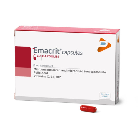 EMACRIT CAPSULE 30'S is a supplement available in capsule form, consisting of an association of iron sucrose, folic acid, and vitamins C, B6, and B12. Specifically formulated to support normal red blood cell formation, this combination aims to counteract tiredness and fatigue.