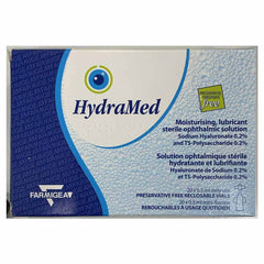 HydraMed is a sterile, preservative-free eye solution designed to moisturize and lubricate. It features Sodium Hyaluronate and TS-Polysaccharide for effective relief without phosphates or preservatives. Ideal for keeping your eyes comfortable and hydrated.