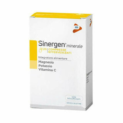 Sinergen Minerale is a dietary supplement that combines magnesium and potassium mineral salts with vitamin C. Magnesium supports electrolyte balance and neuromuscular function, helping to reduce fatigue and physical weakness. Potassium contributes to maintaining normal blood pressure and supports neuromuscular functionality. Vitamin C aids energy metabolism and the efficient functioning of the nervous system. This supplement is beneficial in cases of deficiencies due to insufficient dietary intake, reduced absorption, increased requirements, or excessive fluid loss.