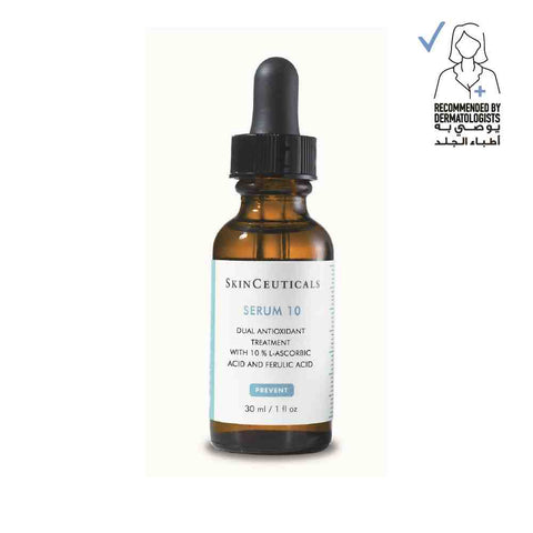 Skinceuticals Serum 10 is a beginner's antioxidant serum that combines 10% L-ascorbic acid (vitamin C) with ferulic acid, resulting in a highly effective antioxidant shield that protects against free radicals and environmental damage. It helps diminish and prevent visible signs of aging while illuminating the skin, resulting in a youthful and radiant appearance. This 10% formulation is ideal for those with sensitive skin.