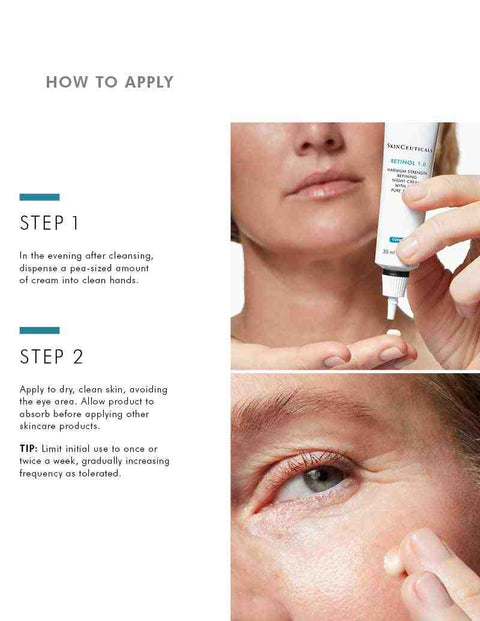 SkinCeuticals 1.0% Retinol Anti Aging Night Cream is ideal for problematic and sun-damaged skin that has been preconditioned with the use of Retinol 0.5. Formulated with the highest concentration of 1.0% pure retinol, this night cream is enhanced with the latest stabilization and delivery technologies to ensure a steady, even release of the maximum available concentration. Retinol 1.0 is proven to diminish the appearance of fine lines, wrinkles, and skin discoloration while minimizing breakouts and the appearance of pores.